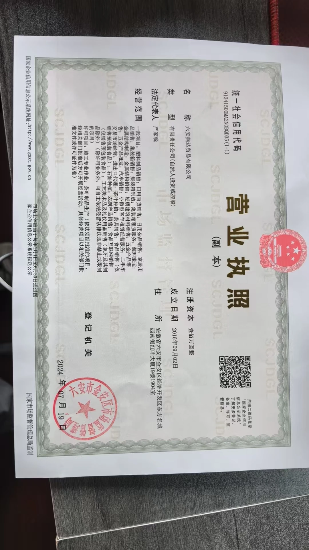 Legal Representative : Yan Jiarui